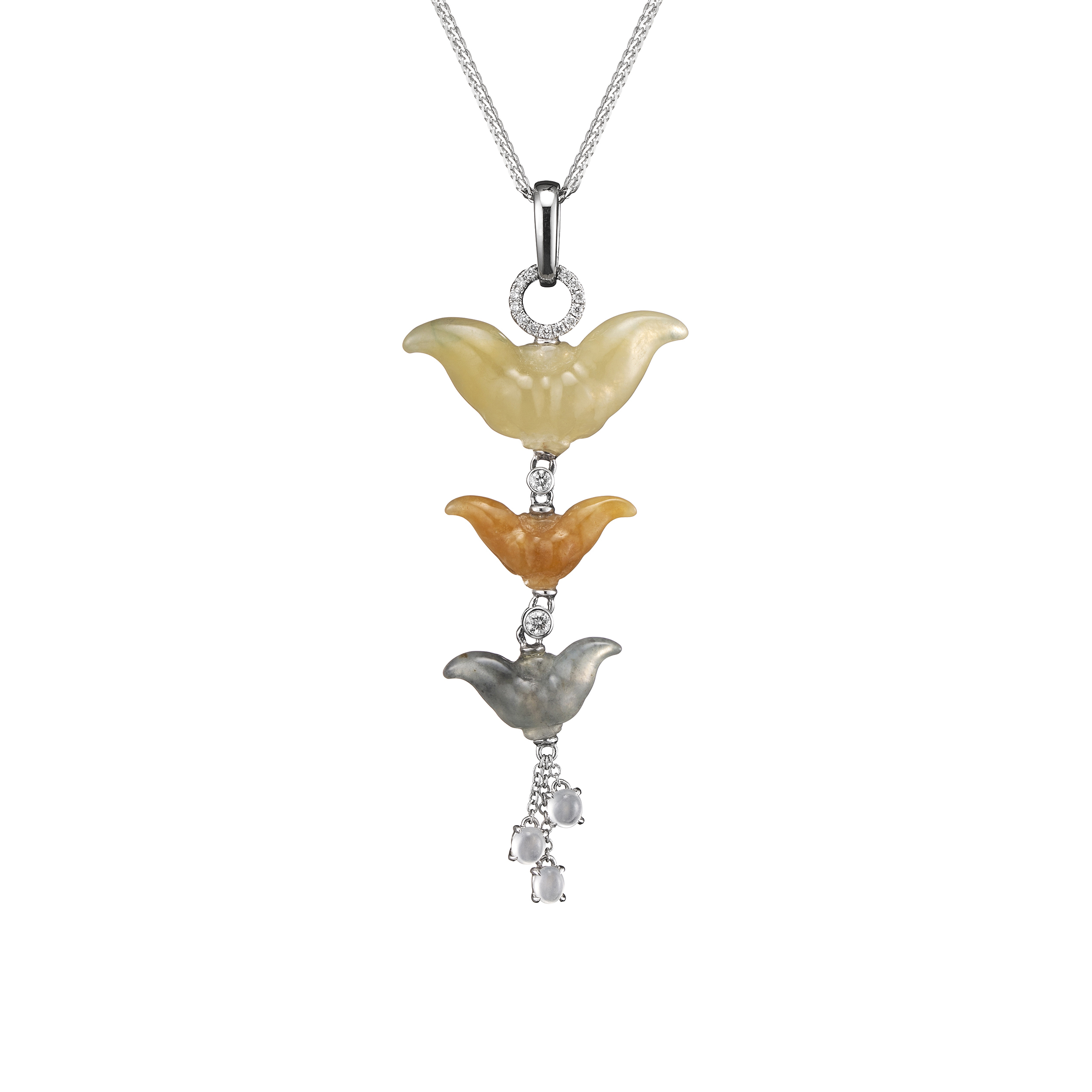 今以溫潤翡翠琢之,刀筆琢磨間,寄寓了暖暖心意。翠玉玉質的樸然裡,含蘊著古典氣韻,散發出溫文敦厚的美感,亦寄寓著脫穎的智慧,以及富足的好運道。