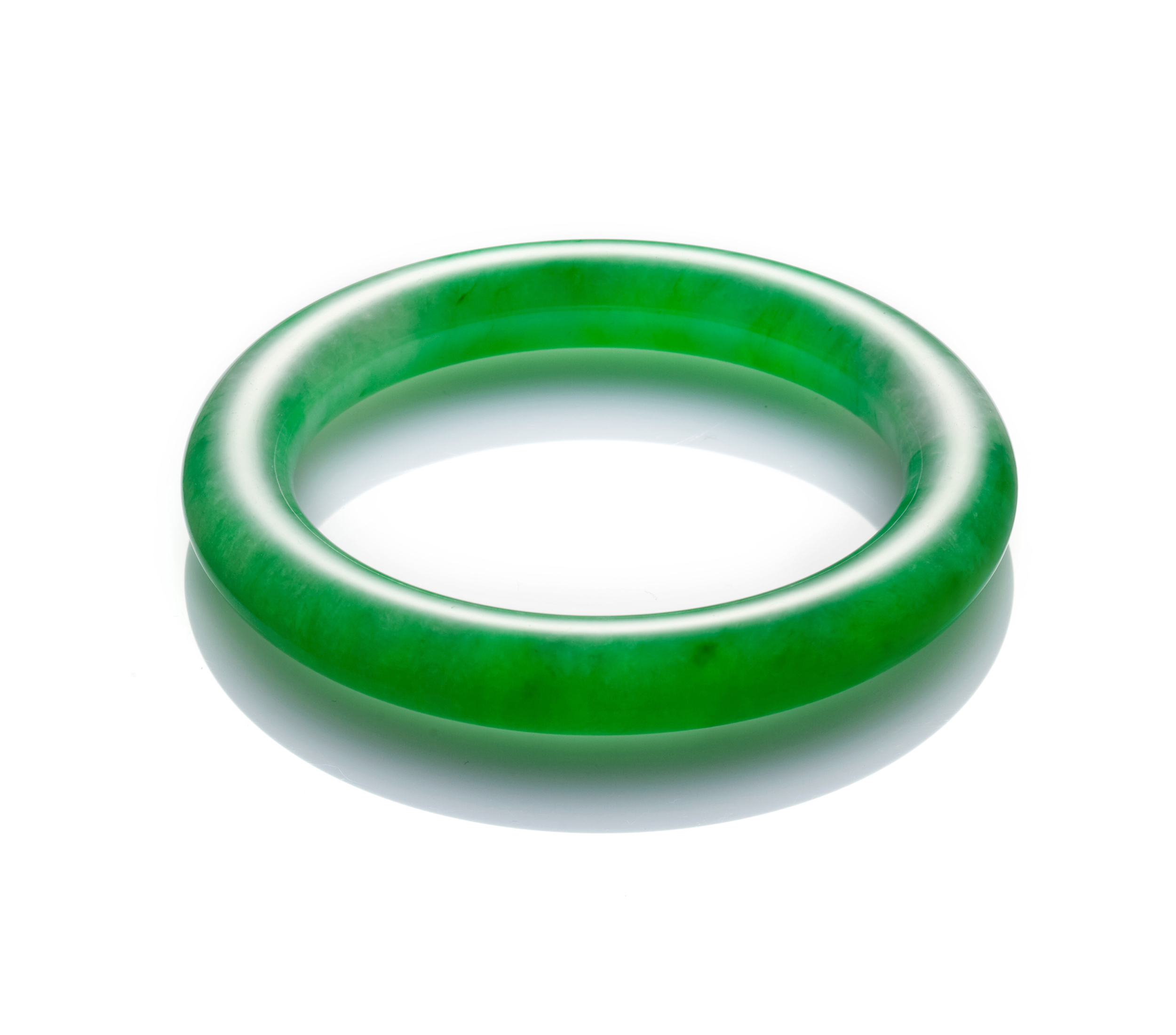 翡翠玉鐲的經典之處,除了質色的優異,更在於蘊含其中的情意。鐲的造型,圓圓滿滿,象徵完足與團圓,最能寄託人間的幸福;再者,玉鐲亦有它的「傳承」意義,在家族的傳世信物中,幾乎都有它的形影,尤其是母親與女兒或媳婦之間,一只玉鐲,傳遞的是親緣間的深厚記憶與情感。另外,因為玉文化的影響,人們普遍認為,配戴玉鐲,別有一番平靜祥和之氣,它的儒雅靜好,散發著特別高貴的內涵與氣質。
