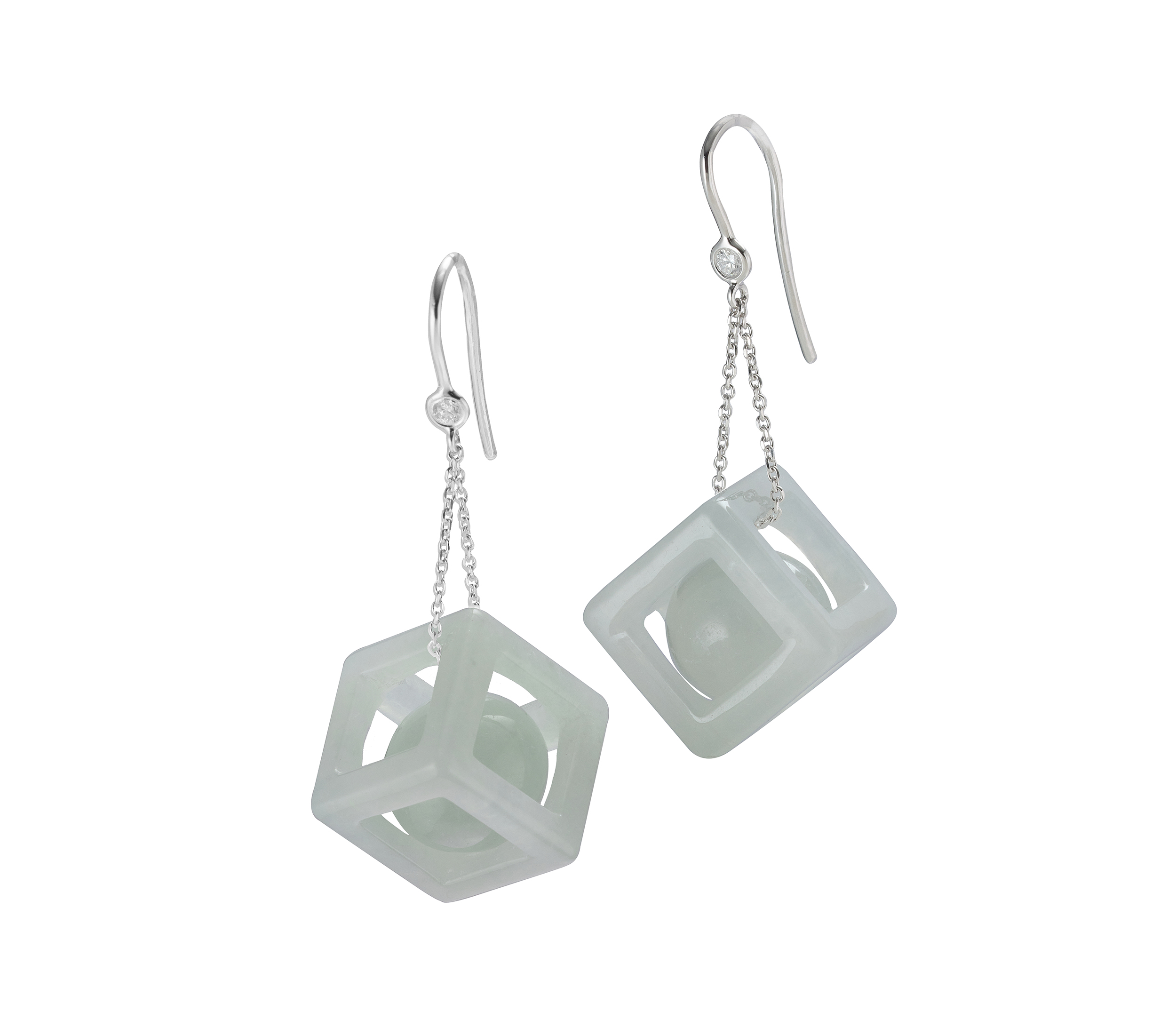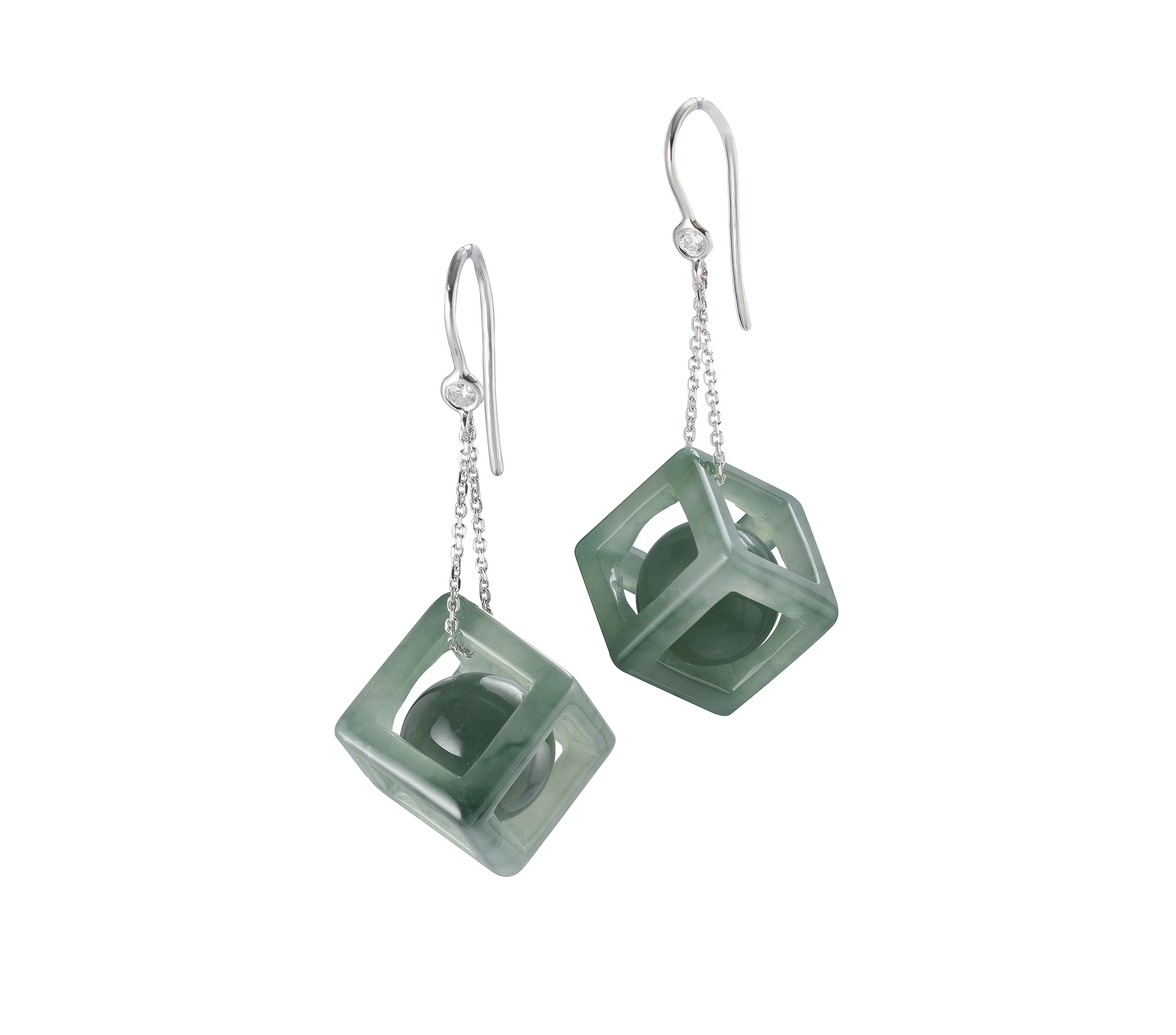 JADEGIA玉世家推出最新設計款【時運天成】翡翠耳環系列,以幾何構成的當代語彙傳述東方玉石的時尚面目。此系列巧妙結合翡翠質色、現代美學的精神及「方圓合一」的哲思意境,以細膩的雕作與鑲嵌工藝,打造出輕盈靈動的耳飾精品珠寶。