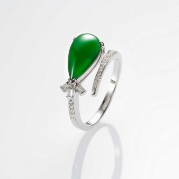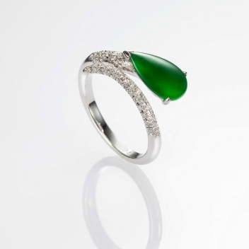 Snake Shadow俏影系列,將翡翠主石切割為經典的水滴造型,流線戒身,以輕盈、嬌俏的小龍身段,優雅纏附於指間,綠翠綻放清麗、白翡述說柔情、墨翠一展個性,簡練自信,一筆勾勒出2013東方時尚符碼!