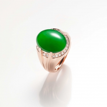 【雋朗】翡翠男戒系列,包含溫潤青碧的綠翠,以及清瑩純透的白翡,舒放著一股優雅文氣;而【圓融】翡翠男戒,則以墨翠的深邃質色,完美詮釋男人的沉練智慧。