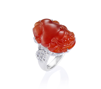 此系列節慶珠寶,主題多樣,其中,有以生肖年為主題的駿馬墜飾,討喜的紅翡玉色,雕作一馬當先的飛奔姿態,寓意「馬上有喜」,十分年輕有活力;亦有以貔貅、葫蘆、懷古等祥瑞圖騰為主題。另有經典蛋面造型,玉光薈萃之中,象徵著圓滿與幸福。