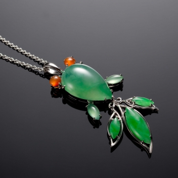 在溫溫潤潤的翡翠玉色裡,綠翠的盎然,白翡的清澈,黃翡的嬌柔,為美的本質定妝出柔韌氣韻,並雕琢為中國傳統文化底蘊裡的圖紋象徵,寄寓著喜悅與吉祥、伶俐與福氣,還有繁盛、有餘的富足……凡此種種美好祝願,透過設計師的巧思琢磨,表現為不泥於古的創意美學,或簡練俐落,或清亮靈動,或俏麗可人,搭配精湛的鑲嵌技術,細膩詮釋出翡翠珠寶形意俱美的丰采。